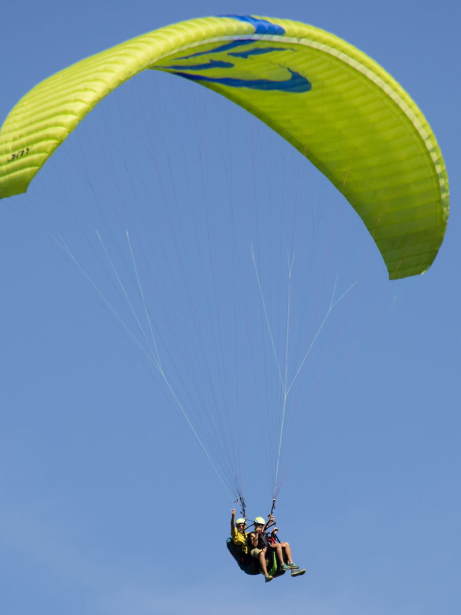 Si les conditions le permettent, le passager pourra prendre le contrôle du parapente.